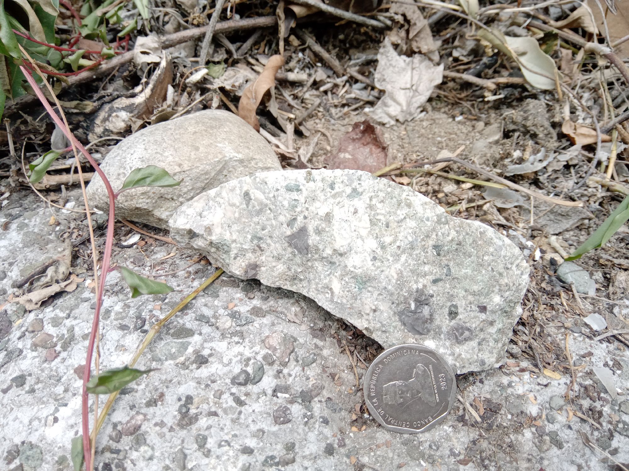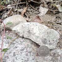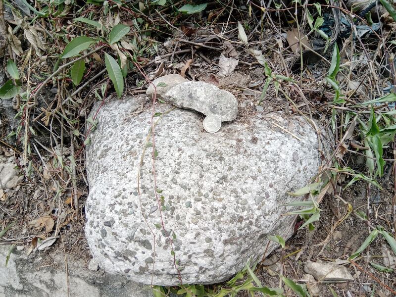 - Bloque de conglomerado de la Formación Vía-Arroyo Seco ("conglomerados masivos de tonos claros"). Comunidad Carrizal